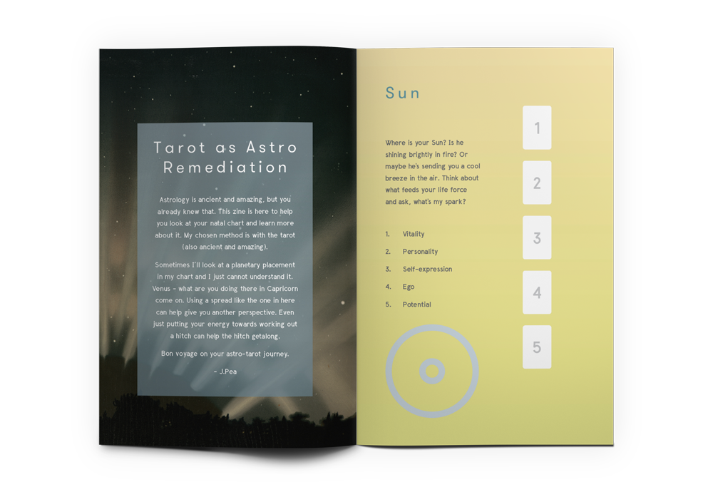 It’s a joy to play in three of my favorite worlds: design, astrology and tarot. I create and design the materials for my tarot lessons, astrology workshops, consultations and readings. The modern ~ new age ~ book design aesthetic isn’t quite what it used to be but it’s been really wonderful to add my personal style to a bit of the esoteric world.