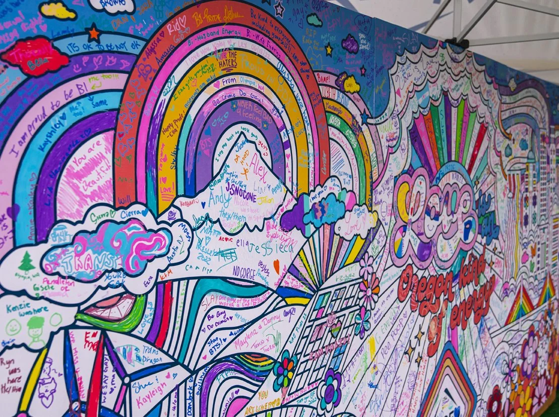 The 6x12’ coloring wall mural invited folks to share a moment with each other and sign their names or write encouraging notes of love and support. It became a moment of connection in a weekend full of celebrations.