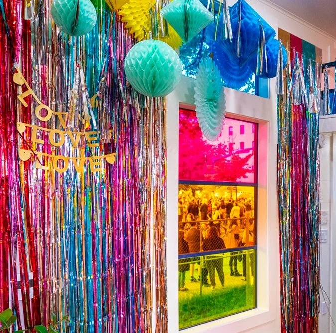 We further refined the Tiny House Party theme to a Golden Girls-meets-retro Palm Springs aesthetic. With the endless onslaught of anti-trans bills and the normalization of anti-LGBTQIA+ rhetoric, we knew we wanted to create a light and playful environment for queer joy.